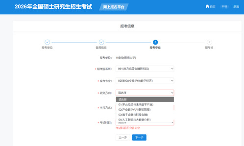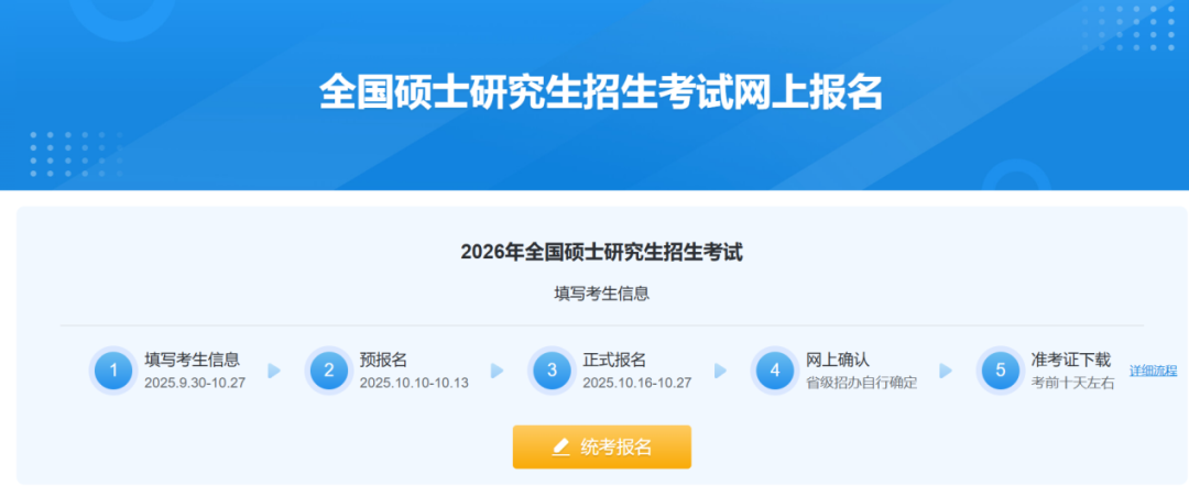 正式报名时间:2025年10月16日-10月27日,每天9:00-22:00。请各位考生登录研招网,根据报名流程,完成网上报名。