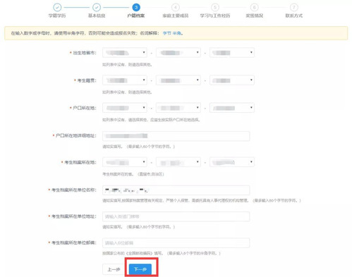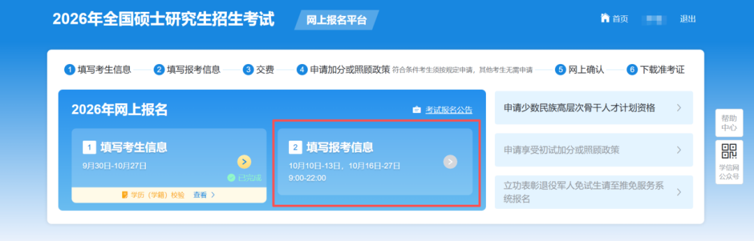 继续填写“报考信息”