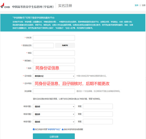 【注意】除身份证号码之外,内容皆可修改。如身份证号码不对,必须填写正确的身份证号码,重新注册。