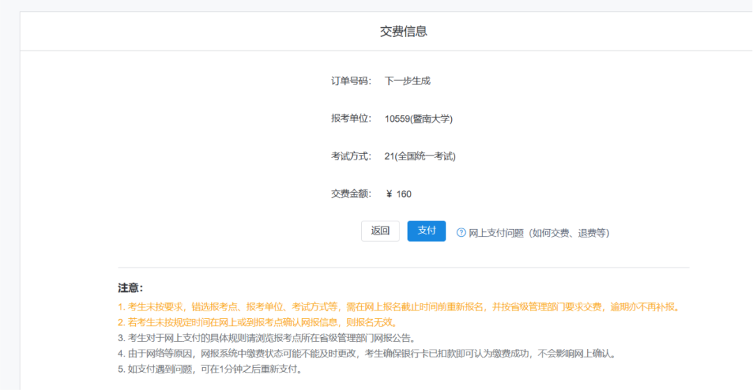 3.6 确认报名信息并缴费,生成报名号