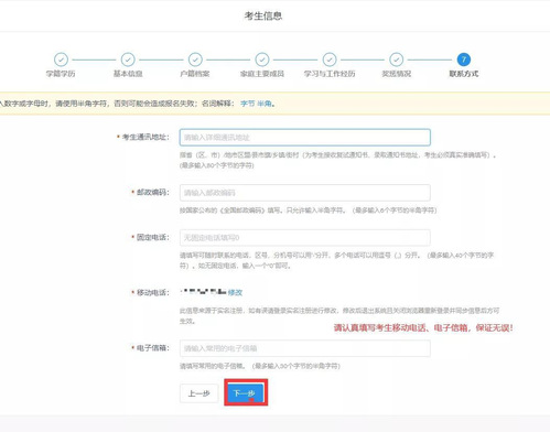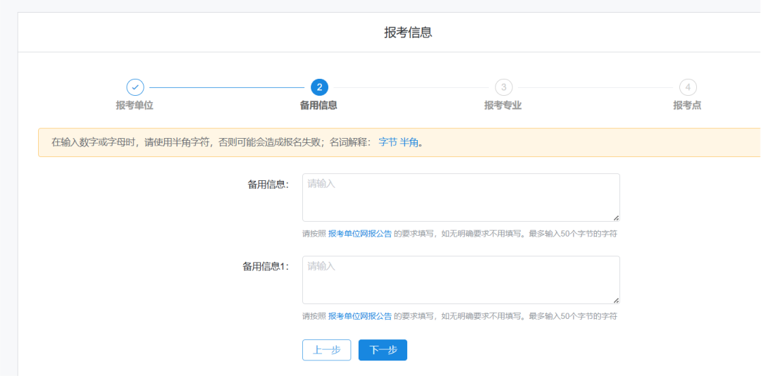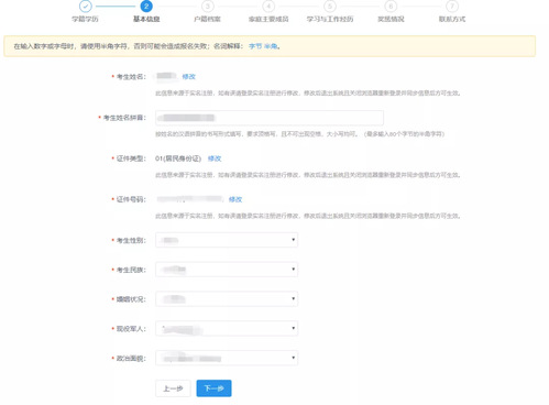 报名分为两大板块:填写考生信息和填写报考信息。
