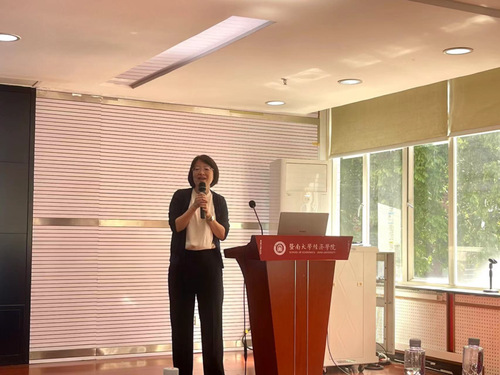 经济学院学科建设与研究生培养办公室主任唐庆峰老师感谢税务硕士实践导师对学院专业硕士学位授权点的发展和建设给予的大力支持,并分析了我国专业学位研究生教育政策的发展趋势,介绍了暨南大学经济学院专业学位研究生培养的特色、创新和未来规划。