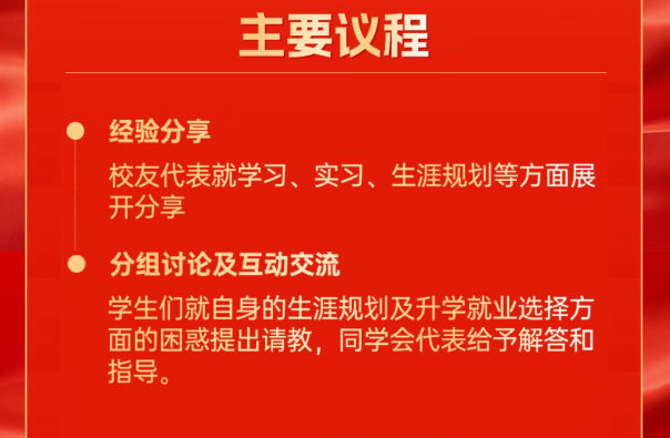 学生们就自身的生涯规划及升学就业选择方面的困惑提出请教,同学会代表给予解答和指导。