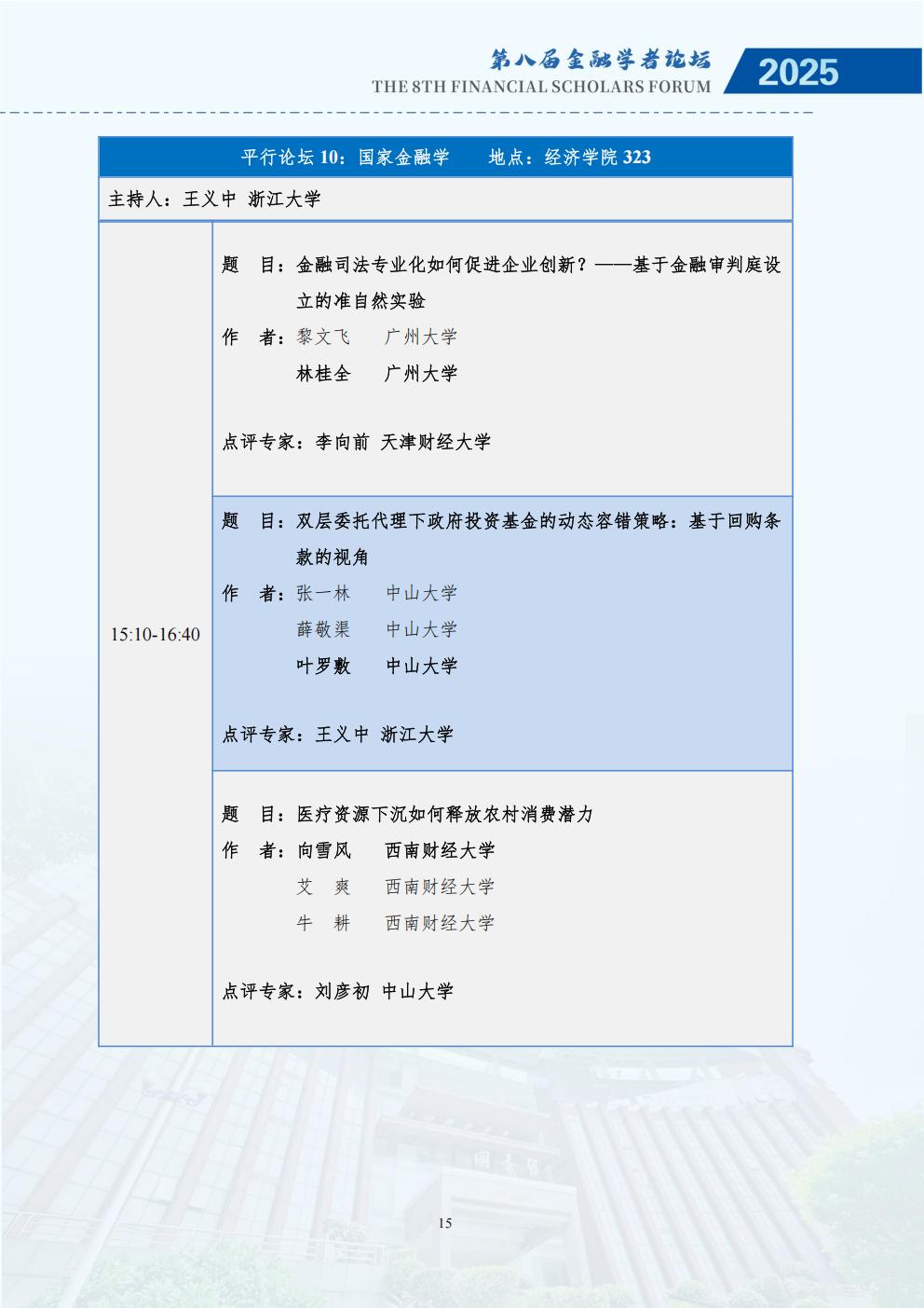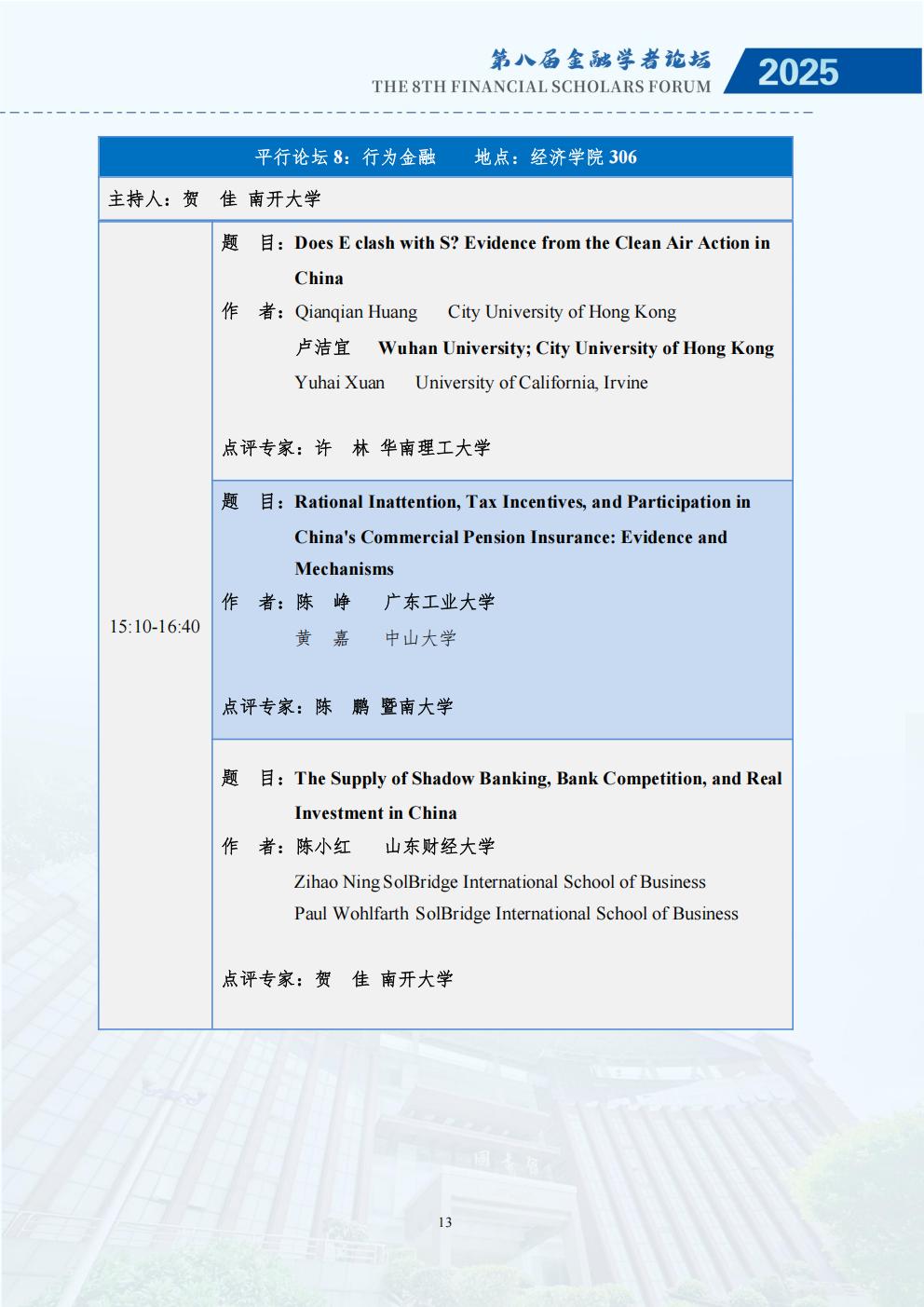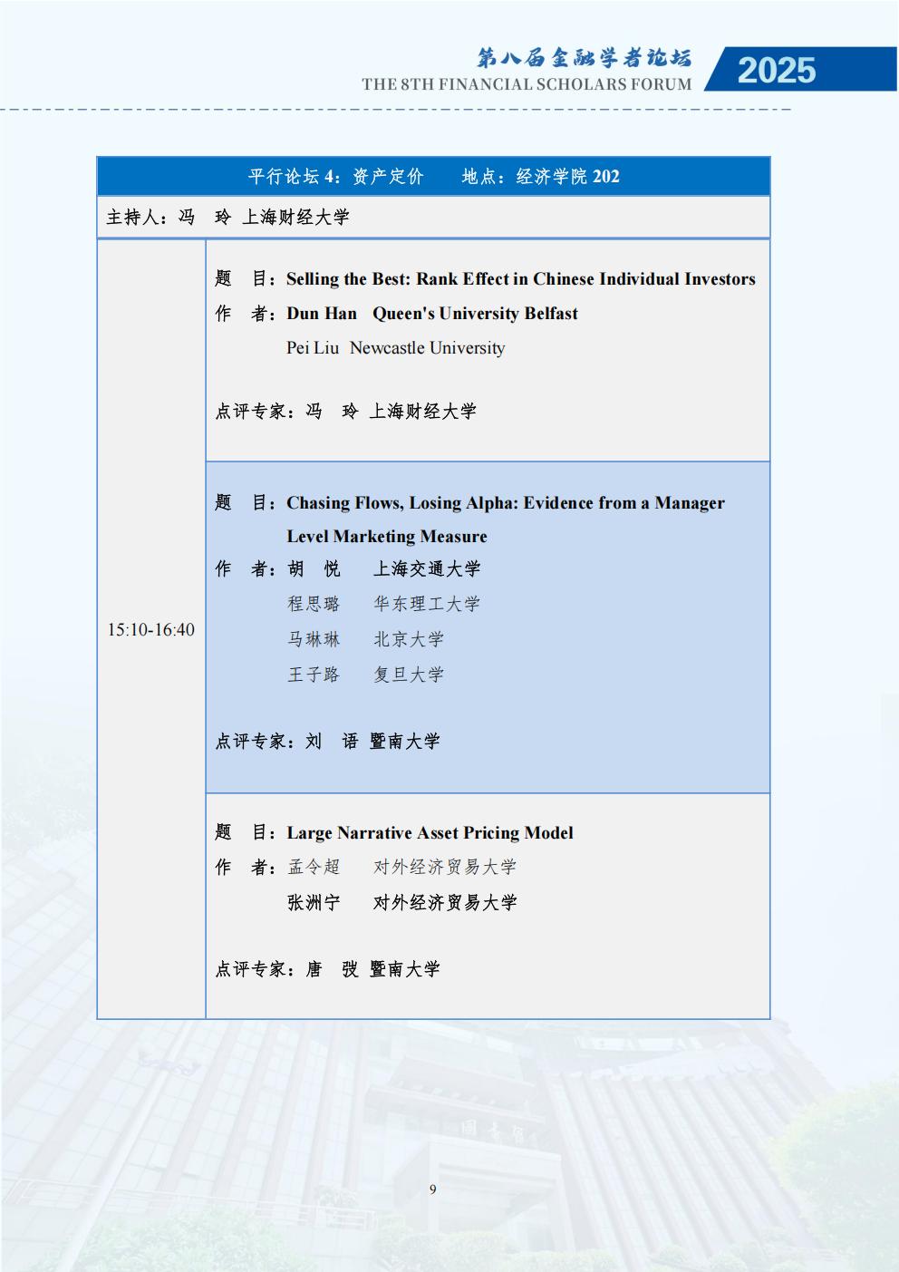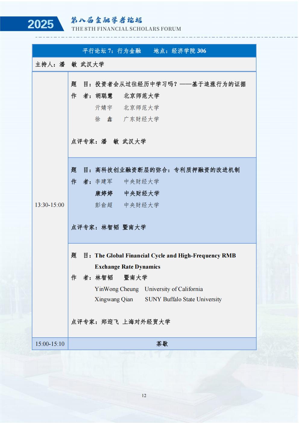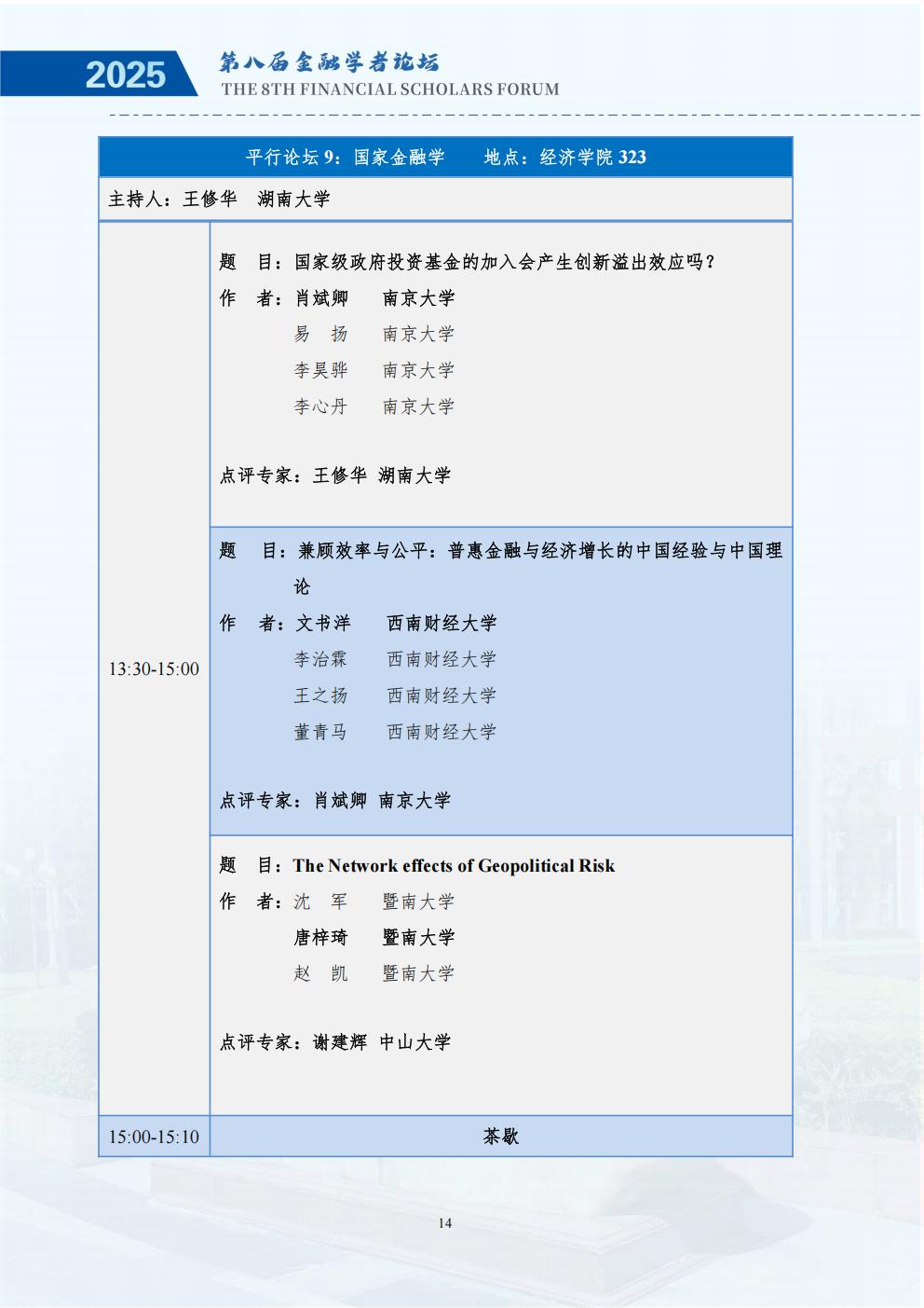 为深入研究金融强国战略与经济高质量发展的内在联系,推动学术界与实务界的深度交流,鼓励中国广大金融学者关注金融强国与经济高质量发展的理论与现实问题,推动基于扎实学术分析的政策研究,更好地服务国家重大战略需求,进一步助力金融高质量发展,经全体发起单位讨论决定,第八届中国金融学者论坛将于2025年11月28至30日在暨南大学举办,由金融学者论坛理事会、暨南大学经济学院、暨南大学南方高等金融研究院、暨南大学国家金融学研究中心主办。