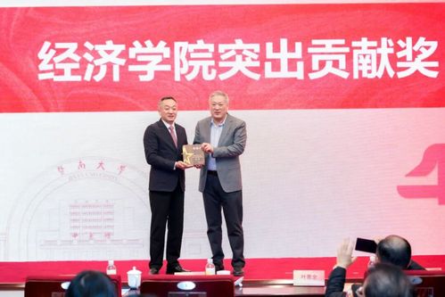 经济学院原院长王富初、刘少波、张捷,原党委书记谭其学、张志,原副院长韩兆洲、郑少智、刘德学、刘金山到场参加大会,孙彧书记为他们颁发“经济学院突出贡献奖”。