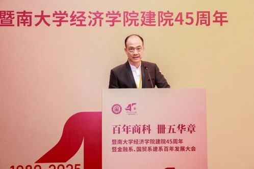 顾乃华副校长在致辞中指出,经济学院于1980年应时而生,是百年商科脉络的重要延续。值此经济学院建院45周年、金融、国贸建系百年之际,他对未来发展提三点期望:要立时代之潮头,构筑服务“国之大者”的学术高峰;要担育人之使命,探索“经世济民”的育人新范式;要扬侨校之特色,打造融通中外的开放创新枢纽。最后,顾乃华展望明年,期望在120周年校庆,大家再聚暨南园,共叙情谊,共绘蓝图。