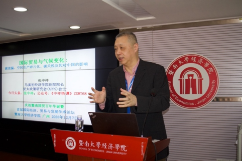 主旨演讲的上半场由暨南大学经济学院国际经济与贸易系主任吴建新教授主持。