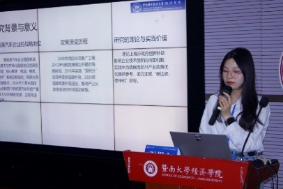 来自国内外知名高校的50多位学者围绕五大主题展开了多维度、深层次的学术交流与思想碰撞。暨南大学经济学院国际经济与贸易系曹奕然助理教授、上官若助理教授、张帆助理教授围绕外商直接投资、市场竞争与环境问题等议题进行汇报。来自美国朗伍德大学的赵益巍、香港城市大学的郝新亚、上海交通大学的詹小灵、西安交通大学的李诚、中央财经大学的石烁、华南理工大学的张惊贤、中南财经政法大学的张露等,积极分享最新研究成果,运用国际前沿的研究方法,紧扣中国经济现实议题展开热烈讨论。与会报告人在交流中相互启发,共同为相关领域的理论深化与政策创新贡献了富有建设性的见解与新思路。
