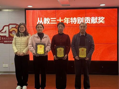 钟韵副院长宣读从教30年获“暨南大学经济学院特别贡献奖”名单,并为获奖代表颁发纪念奖。