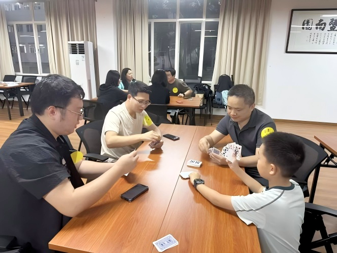 赛场上设置了投壶、两人三足、双腿套袋、掼蛋等多项趣味项目。投壶之间,大家凝神聚力、从容出手,尽显沉稳气度;两人三足与袋鼠跳环节,考验的不仅是速度,更是队友间的节奏与默契,同学们相互提醒、步调一致,在欢声笑语中完成一次次接力;掼蛋项目妙趣横生,现场气氛轻松热烈,在轻松互动中拉近了彼此距离。经过多轮精彩角逐,经济学院MDE代表队凭借出色的团队配合,最终斩获本次趣味运动会团体冠军。