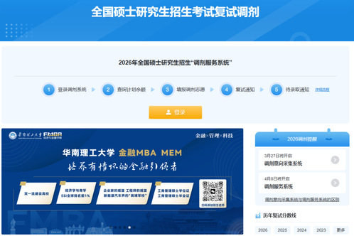 2026年全国硕士研究生招生调剂服务系统将于2026年4月8日0:00开通!